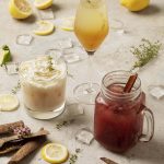 Vu’s Sky Bar and Lounge’s cocktail drinks, clockwise from top: Yuletide Pears, Holiday Sangria and White Christmas