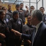 U.S. Ambassador Sung Kim greeting the culinary scholars of the Tuloy Foundation just before their shared Thanksgiving meal