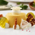 Mango Passionfruit Tart with Almond Nougatine and Lime Meringue