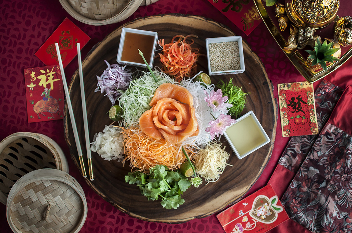 Yee Sang or Yu Sheng Salad is a prosperity salad that is tossed on Chinese New Year for good luck. The higher the toss, the more luck the new year is supposed to bring.
