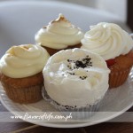 Cupcakes galore, clockwise from front center: Choco Cream Pie, Bunny Hugger Carrot Cupcake, Banana Custard, and Berries n’ Cream