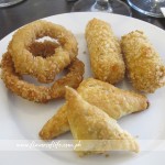 Appetizers, clockwise from top left: Calamares, Chorizo and Cheese Croquettes, and Duck Rilettes