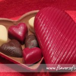 Heart-shaped pralines in a chocolate heart box