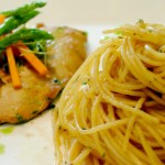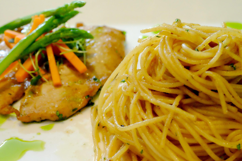 Creamy Marsala Spaghetti served with Pan-fried Chicken Breast