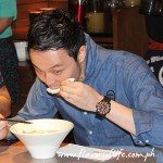Shiiba showing how best to enjoy a bowl of Japanese ramen: Sip the soup, pick up a few strands of noodles and slurp, then take the toppings