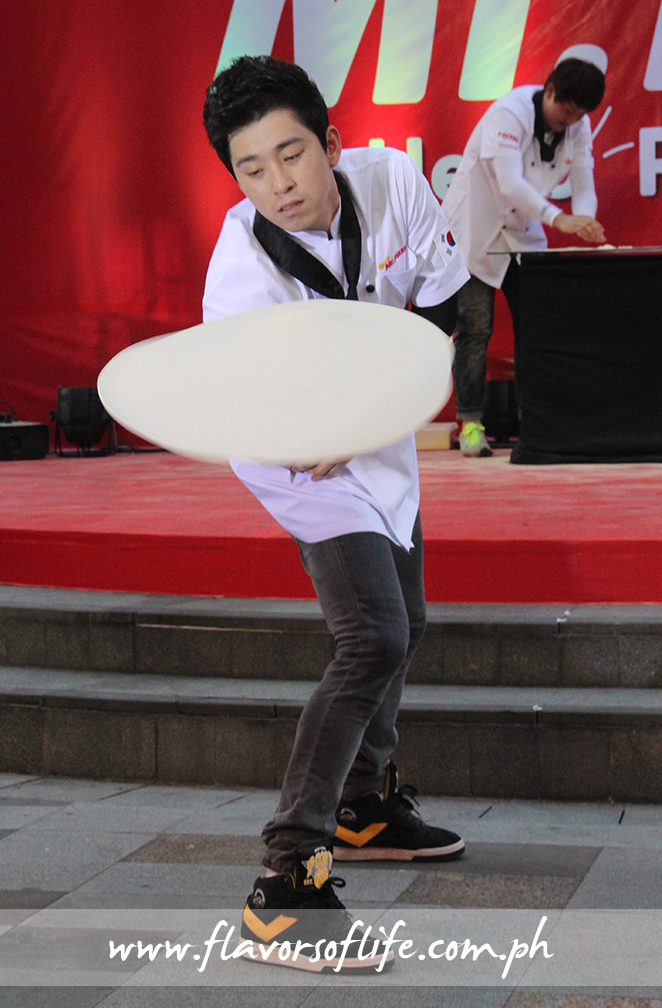 Spinning pizza dough as if it were a basketball in the hands of a Harlem Globetrotter…