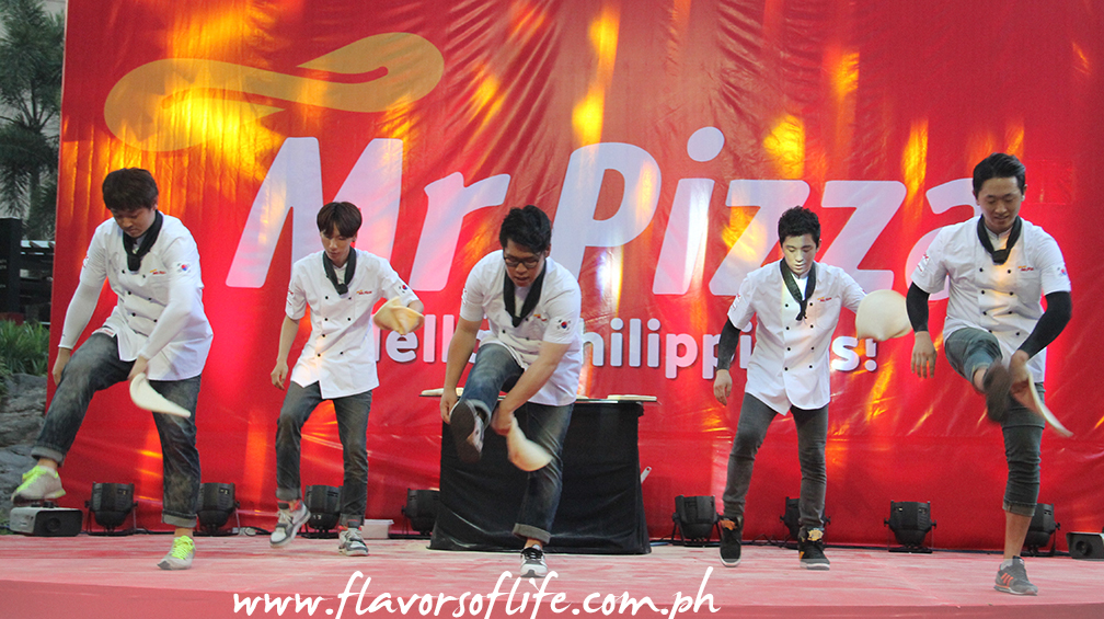 All together now–Korean pizza dough jugglers ‘dribble’ pizza doughs between their legs