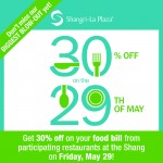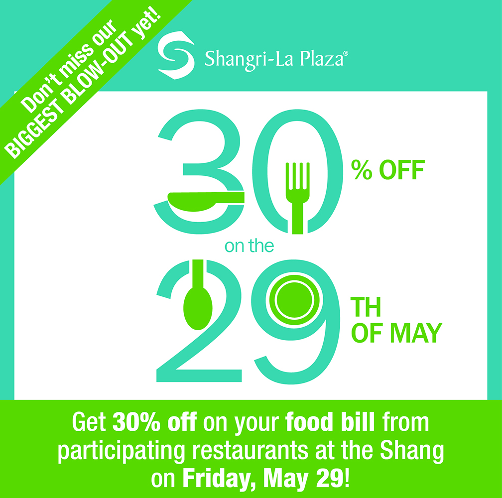 If you see this signage by the entrance of a restaurant at Shangri-La Plaza this Friday, May 29, you get 30% off your food bill