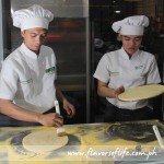 The pizzeria showcases actual pizza making, which diners can watch through a show window