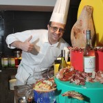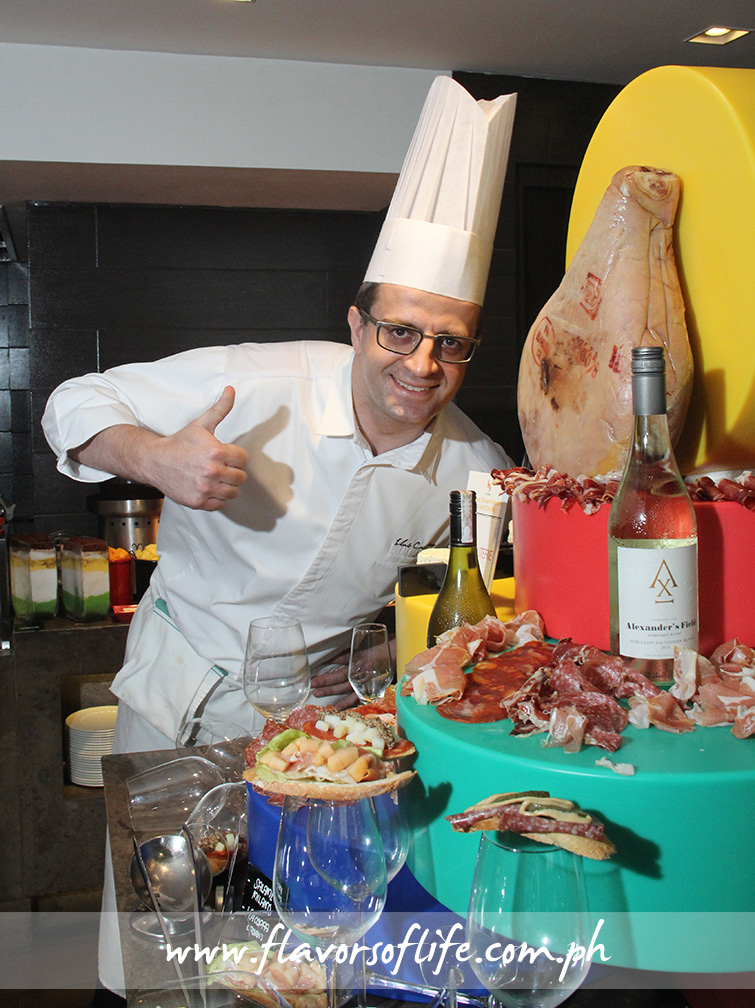 Executive Chef Luis Pesaradonna beside the Iberico ham and other Charcuterie delights