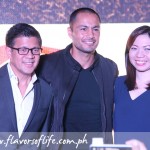 Derek Ramsay flanked by Century Pacific Group general manager Greg Banzon and marketing manager Gela Gamboa