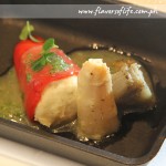 Piquillo Peppers Stuffed with Cod Fish Brandada, Pil-pil Sauce and Artichokes on a White Asparagus Bed