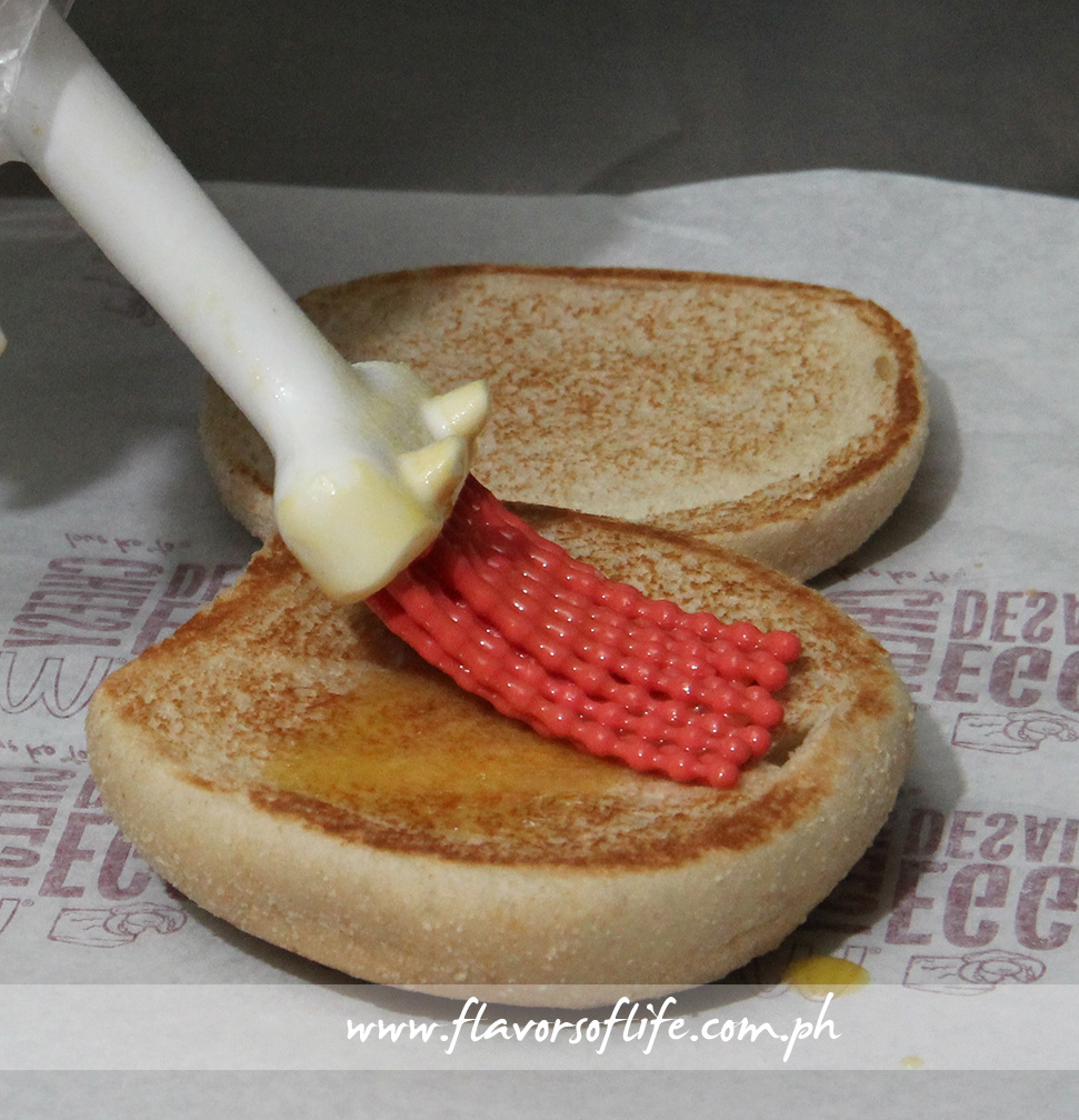 The English muffin buns used for the McMuffins are roasted and lightly brushed with butter