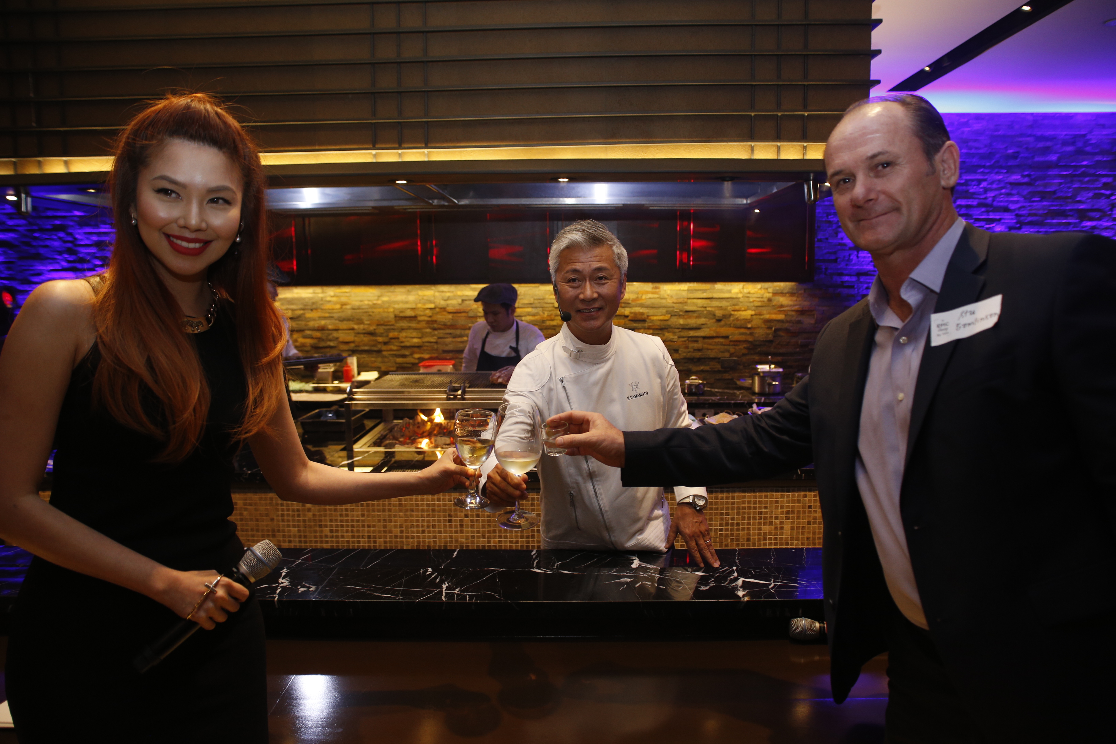 the ceremonial toast during the launch of epic dining curations by visa, from left-bianca valerio, chef hide yamamoto n visa’s stuart tomlinson-1