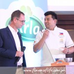 Chef Gino Gonzalez, joined by Arla Foods’ Jens Christian Krogh Nielsen, as he conducted a cooking demonstration on how to prepare ‘Arla Cheesy Spread Pandenini’