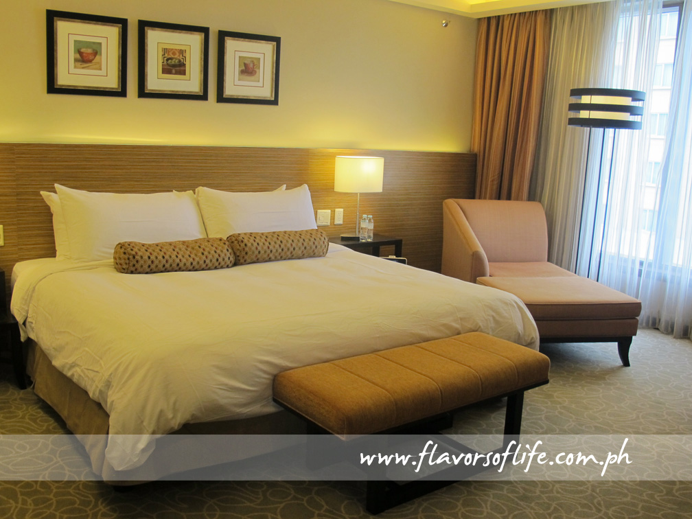 The rooms of The Bellevue Manila are very spacious, and they have a creatively different layout than most hotels, to which space is very precious. At Bellevue, you get all the space you need, especially in a corner Deluxe Room, which affords you a two-sided view of the cityscape outside. From the usual narrow corridor when you step inside the room, there is a walk-in closet that leads to the bathroom. Even the bathroom is spacious, treating guests to a separate glass-enclosed shower room from the bathtub. There is also a small receiving area in the room next to the writing table before you actually find the bed. What’s more: There’s free WiFi in the room, so I spent most of my free time that weekend working on articles for FLAVORS Magazine, emailing them to my artist for layout, writing a story for this blog/website of mine, and uploading the story without much hassle. And if you happen to be staying in a Signature Club floor, you can even go up to the Signature Club Lounge on the 21st floor and enjoy drinks, cocktails, snacks, even breakfast, on the house.