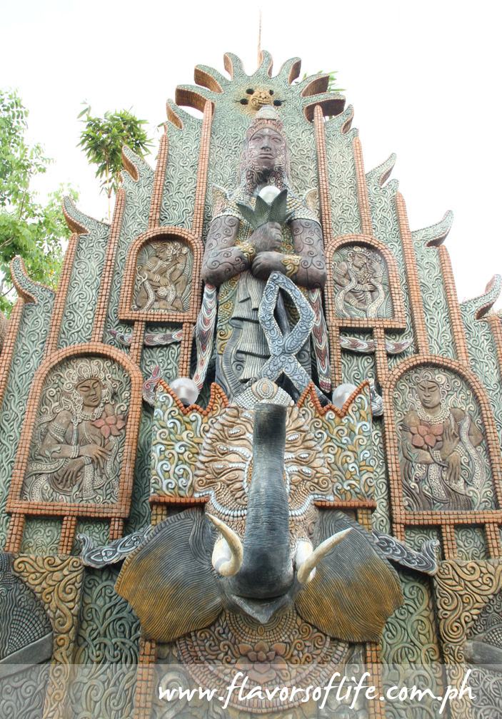 Tucked in an almost hidden area of Sitio Pandayan, Malabanan, Balete, Batangas, Cintai is like a piece of Bali in Batangas. Unlike other places I’ve seen that claimed to be Bali-inspired yet only offers a glimpse of Bali in the form of a Balinese-looking architecture or sculpture, Cintai offers an entire Balinese experience because everywhere you look, it’s Bali that you see. The walls are filled with Balinese sculptures and not just murals, the details on the awnings and posts are intricate with peacocks and Indonesian characters. Authentic sand stone “Gebyok” doors, or traditional Javanese carved teakwood doors, adorn the ballroom. The architecture of the restaurant, pavilions that serve as function rooms, as well as the reception area – and even the powder rooms for both men and women – are unmistakably Indonesian. Breathtakingly beautiful stone sculptures are scattered all around the place, from the entrance to the hidden nooks of the endless stretches of gardens.