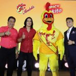 At the formal launch of Andok’s Spicy Dokito and introduction of the brand’s first-ever brand ambassador, from left: Andok’s founder Sandy Javier, Piolo Pascual, Andok’s mascot and Andok’s EVP Maverick Javier